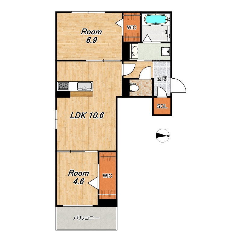 グランディオーズ桂 402号室【広々50平米超えの1LDK】
