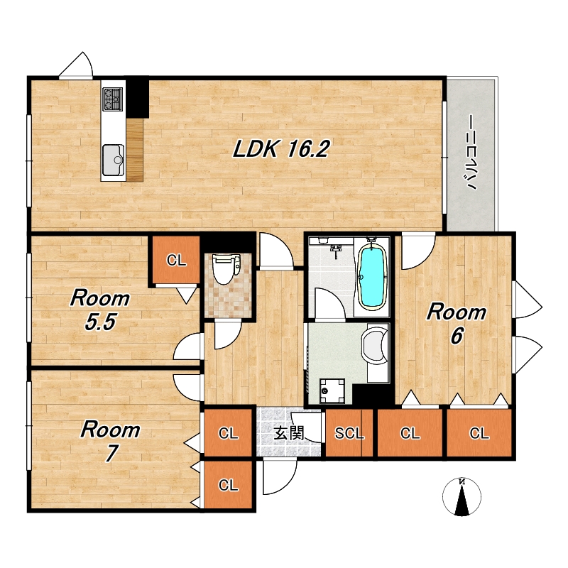 シャーメゾンKojima 208号室【ゆとりの64平米超えの1LDK】(動画あり)
