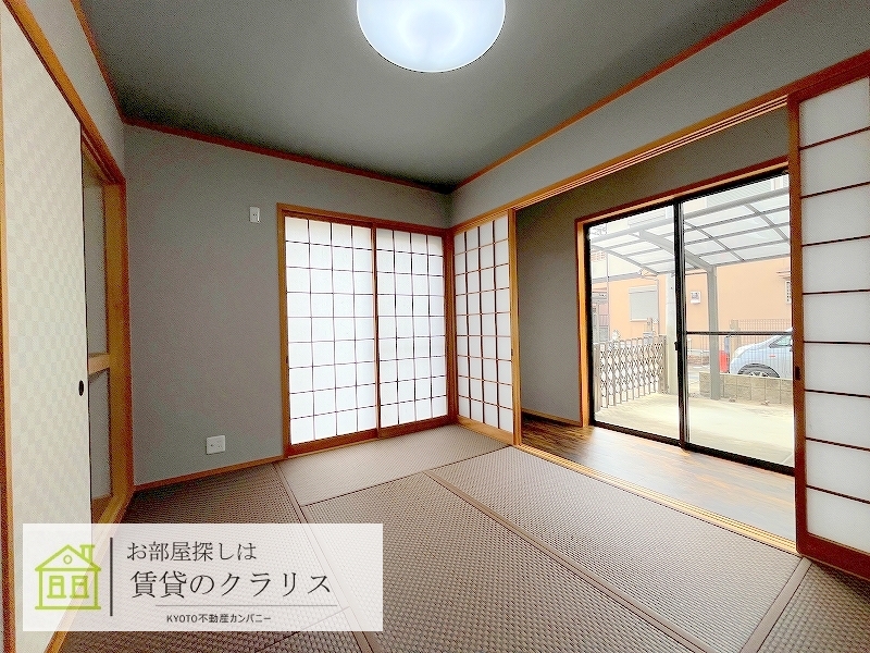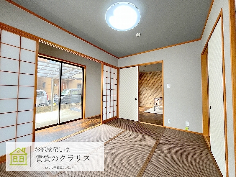 京都市西京区の賃貸!京都屈指の観光地「嵐山エリア」に稀少な4LDKタイプの「ガレージ付き・一戸建て」募集♪平成16年築と比較的新しいうえに「2022年に室内を大幅リフォーム」でさらにグレードアップしています!「ガレージも車種のよっては3台駐車可能」♪「ガーデニングスペース」でBBQも楽しめますよ♪システムキッチンや追い焚き機能付きバス、浴室乾燥機、ヌック、カワックなど設備も充実!さらに「天井収納」もありますよ。閑静な住宅地で住環境も良好で渡月橋で散歩もできますよ♪ --現地集合案内可能です!お気軽にお問い合わせください。--
