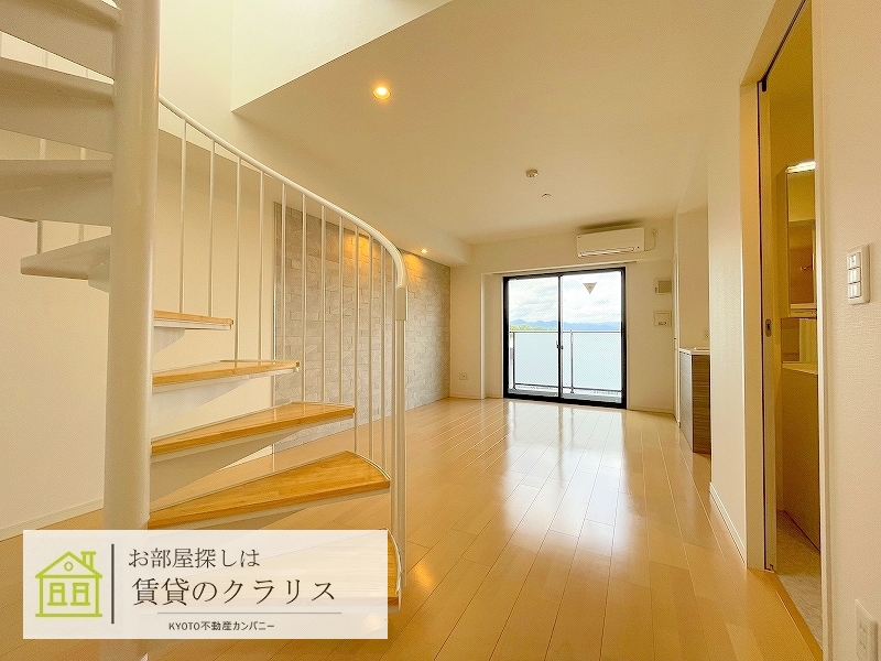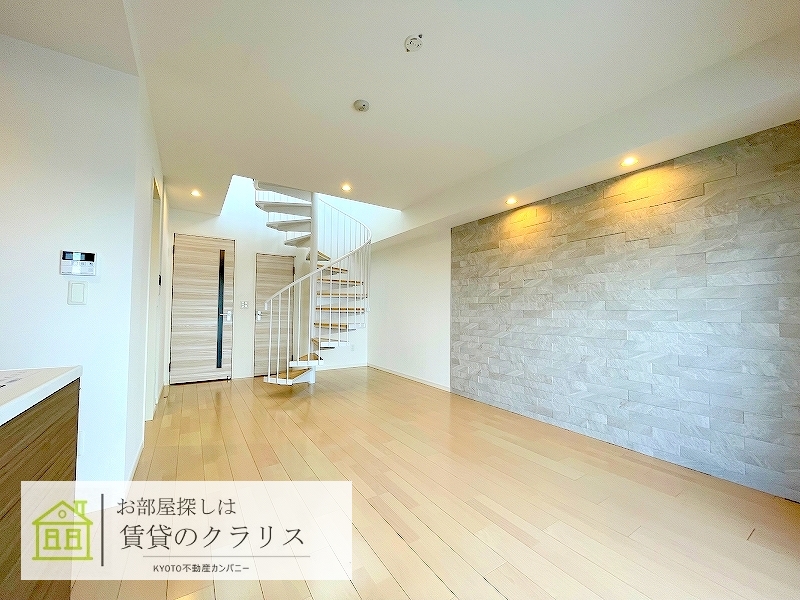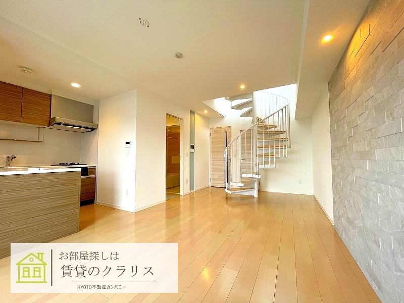京都市南区の賃貸マンション!平成30年築のお洒落な「デザイナーズマンション」♪「メゾネットタイプ」の1LDKで螺旋階段が特徴的!「インターネットも無料」でご利用可能で「大型のウォークインクローゼット」も付いています♪さらに広ーい「ルーフバルコニー」もございますので「極上の癒しの空間」としてご利用頂ければと思います!駅前には大型ショッピング施設「イオンモール京都桂川」もありますのでとっても便利です。 --現地集合案内可能です!お気軽にお問い合わせください--