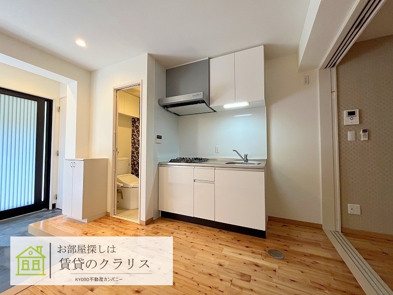 京都市東山区の賃貸マンション!「東山七条エリア」に平成28年築の「土間付きの1DK」募集♪立地も良く、設備も2口ガスシステムキッチンや追い焚き機能付きバス、「インターネット無料」など充実!「2人入居」もご相談可です♪【室内写真は反転タイプです。】 --現地集合案内可能です!お気軽にお問い合わせください。--