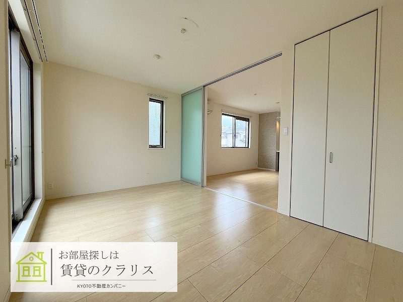 京都市西京区の賃貸!平成26年築の「ハイグレード仕様のシャーメゾン」の1LDK♪「角部屋&東向き」の快適な室内空間!ゆとりの46平米超え♪「敷地内ガレージ」も空きがございます♪システムキッチンや追い焚き機能付きバス、浴室乾燥機、シャンプードレッサーなど設備も充実!「大型のクローゼット」がございますのでお荷物の多い方にもおすすめ!「閑静な住宅地」で穏やかにお住まい頂けます♪【室内写真は208号室です。参考にご覧ください】