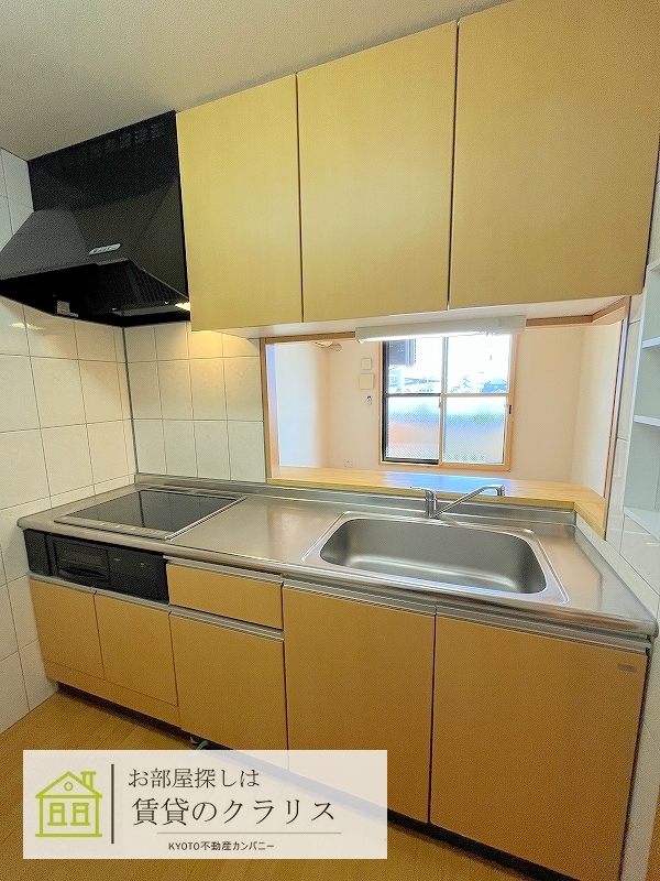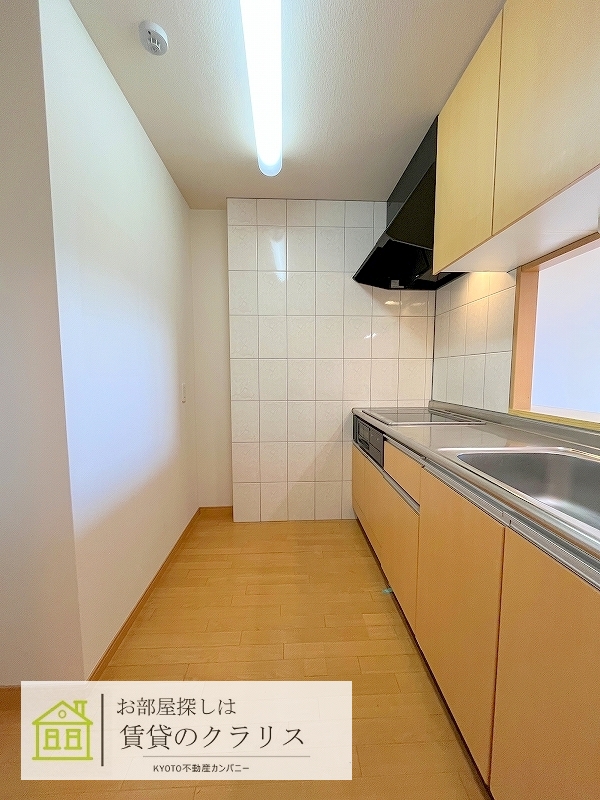 京都府長岡京市の賃貸マンション!「西山天王山エリア」に平成23年築の「築浅・2LDK」募集♪経済的な「オール電化」!カウンターキッチンタイプの使い勝手の良いリビング♪クローゼットは収納力有り!システムキッチンや追い焚き機能付きバス、浴室乾燥機など設備も充実。「敷地内ガレージ」も空きがありますのでお車をお持ちの方にもおすすめ!「法人契約」の方に人気のお部屋です♪【室内写真は反転タイプです。】