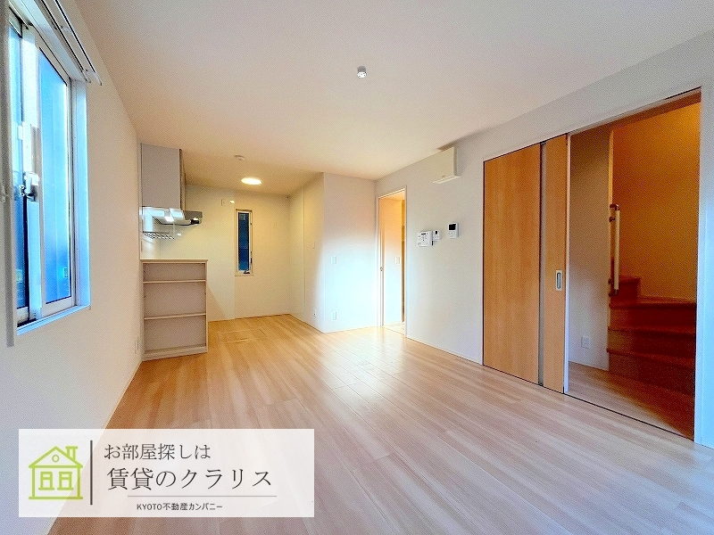 京都市中京区の賃貸!人気の「JR二条エリア」に平成29年築の大手ハウスメーカー施工の「築浅・2LDK」募集♪「ALSOK付き」のセキュリティ賃貸物件です!「戸建て感覚」ですので気兼ねなくお住まい頂けます♪システムキッチンや追い焚き機能付きバス、浴室乾燥機、シャンプードレッサーなど設備も充実!さらに「インターネット無料」♪「敷地内ガレージ」も空きありですのでお車をお持ちの方に是非! --現地集合案内可能です!お気軽にお問い合わせください。--