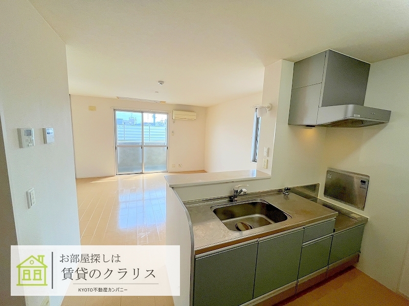 京都市西京区の賃貸!閑静な住宅地「上桂エリア」に平成21年築の広々62平米超えの2LDK♪「ガレージは電動ゲート付き」ですので大事な愛車も安心♪「インターネット無料」の好条件で「大型のウォークインクロゼット」も付いてます。システムキッチンや追い焚き機能付きバス、浴室乾燥機、シャンプードレッサー、ウォシュレットトイレなど設備も充実♪「角部屋」で「南向き」の快適なお部屋ですのでお早めに!