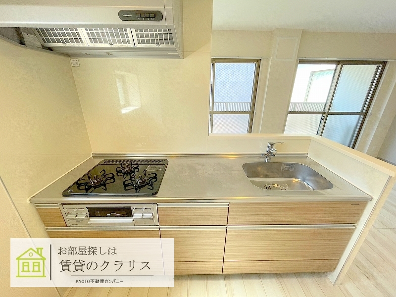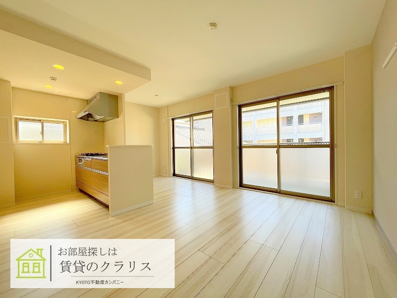 京都市中京区の賃貸マンション!平成30年築のお洒落な「デザイナーズ風」外観の2LDK♪3口ガスシステムキッチンは女性に人気のカウンタータイプ!ゆったりとしたバスルームは追い焚き&浴室乾燥機付き。インターネットも無料でご利用可能ですのでとってもお得です。近隣にはスーパーやコンビニはもちろん、「京都御所」や「二条城」などの観光スポットもあります♪