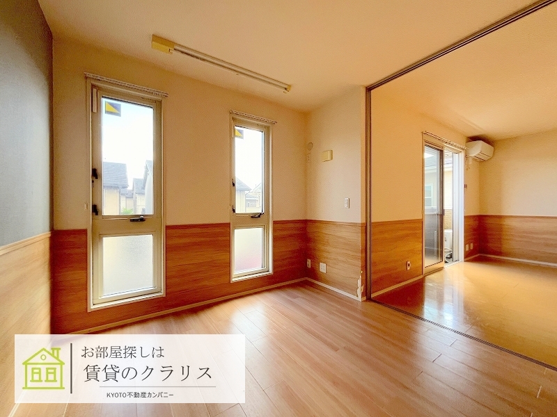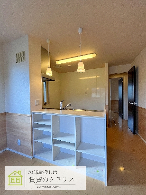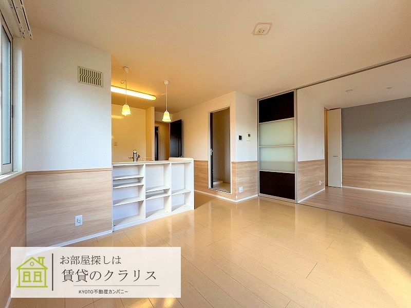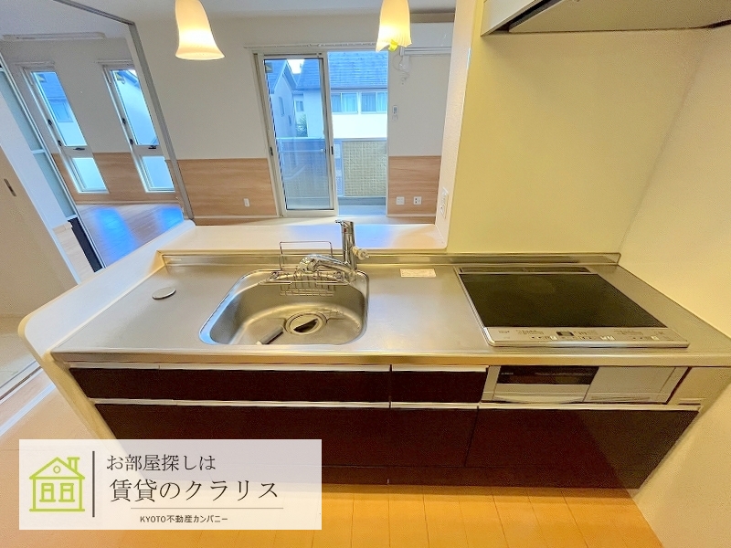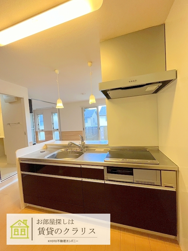 京都市西京区の賃貸!「桂・川島エリア」に平成25年築の「ペット相談可・D-room」募集♪経済的な「オール電化」。「小型犬1匹が飼える」嬉しい特典付き!「閑静な住宅地」で住環境も良好♪「ALSOK付き」のセキュリティ賃貸物件でカウンターキッチンタイプのお洒落なお部屋!システムキッチンや追い焚き機能付きバス、浴室乾燥機、シャンプードレッサー、「インターネット無料」など設備も充実しています♪早いもの勝ちです♪ 【室内写真は反転タイプです。】